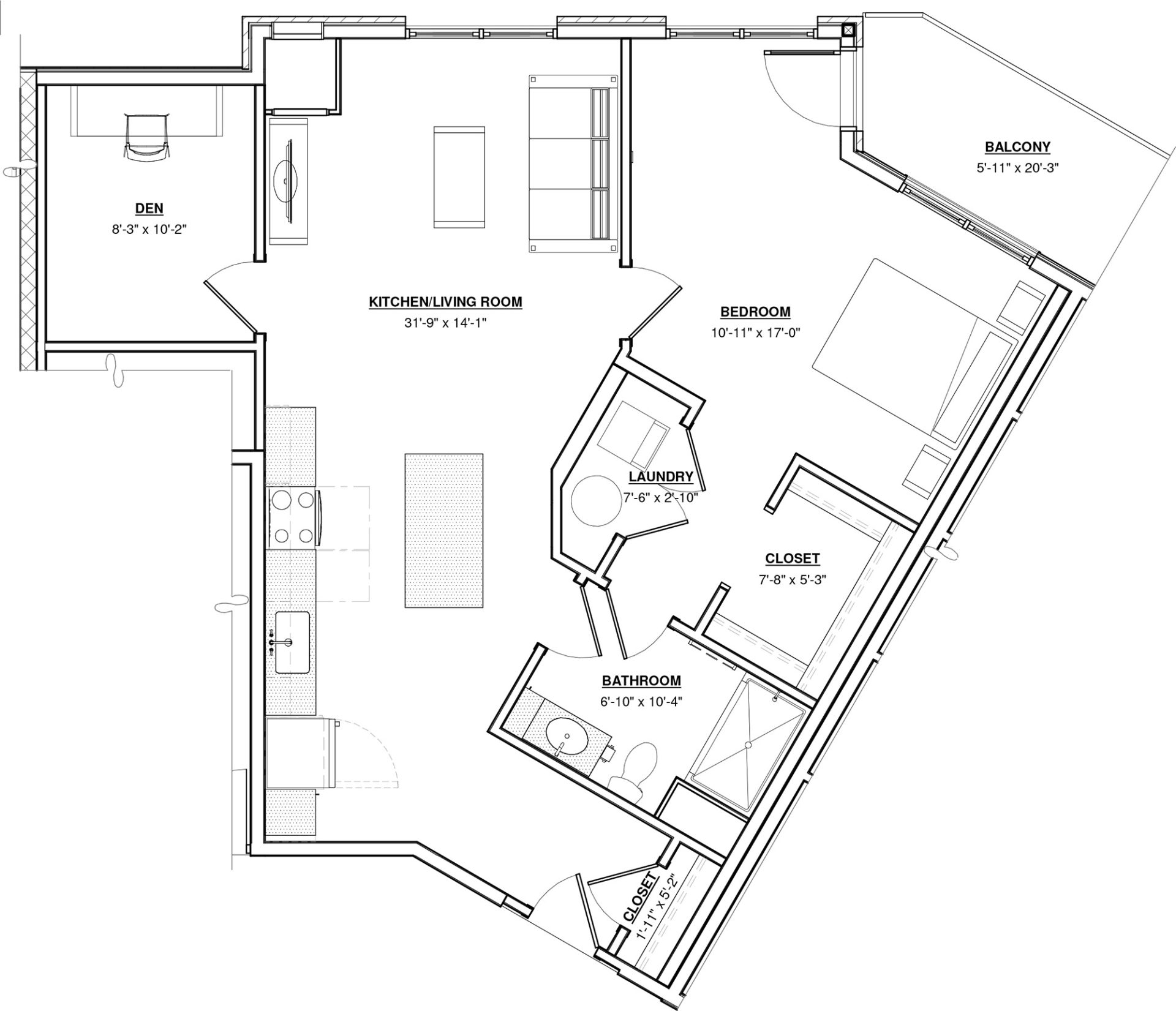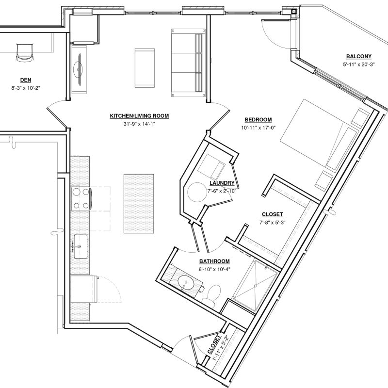 1 BR + Den · 1 Bath