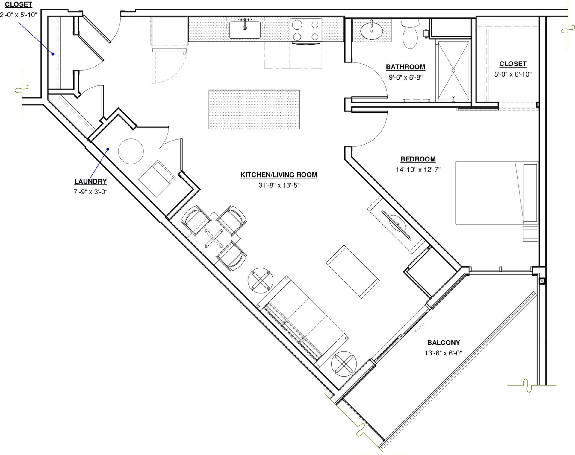 Yorktown Reserve offers studio – three bedroom units, each with Class-A finishes, in-unit washers and dryers, and much more. A selection of floor plan styles is available below. Our full selection of floor plans will be available in January, 2026. If you are interested in reserving a unit, please contact us.